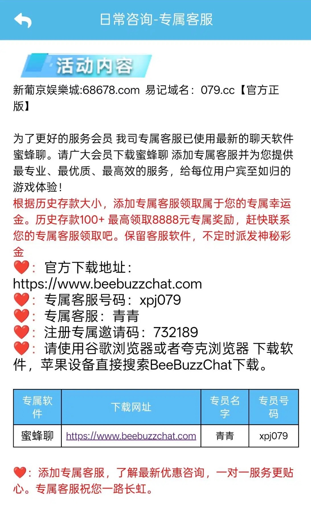 有历史充值过100以上的兄弟可以联系客服领取一下彩金