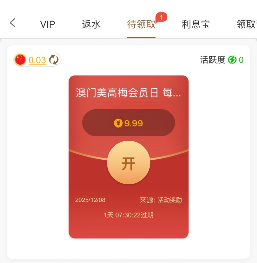 有号的可以登入上看看自己有没有这个彩金,领取这个彩金要最低充值1元才能领取,平台最低充值10块,感兴趣的可以弄一下,看看能不能打出来
